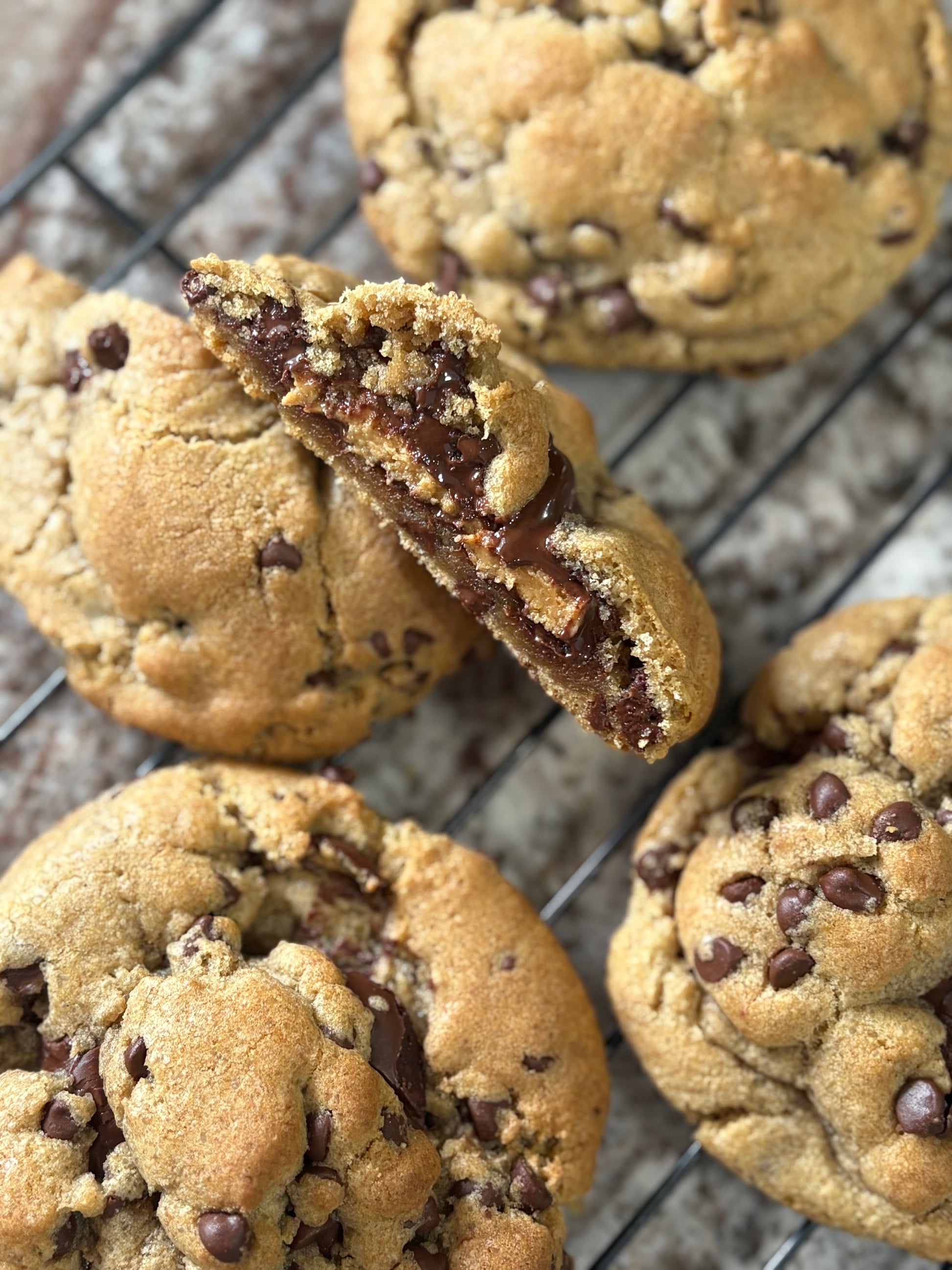 2 Large chocolate chip cookies stuffed with homemade peanut butter cups🍪